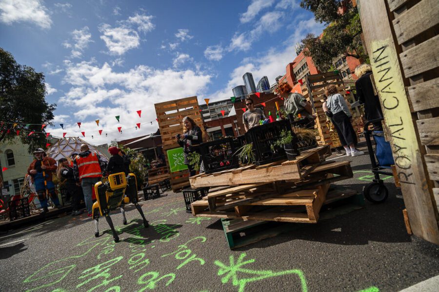 With the support of City of Melbourne, RMIT University Health Transformation Lab and RMIT Culture, RMIT Future Play Lab explored the future of Cardigan Street as central to the City North Social Innovation Precinct and its role in RMIT as a playable campus. The width of the street and proximity to student communities engaged with industries of creativity, care, and construction places it as a hub connecting Queen Victoria Market, Carlton and surrounds with the forthcoming State Library Station.